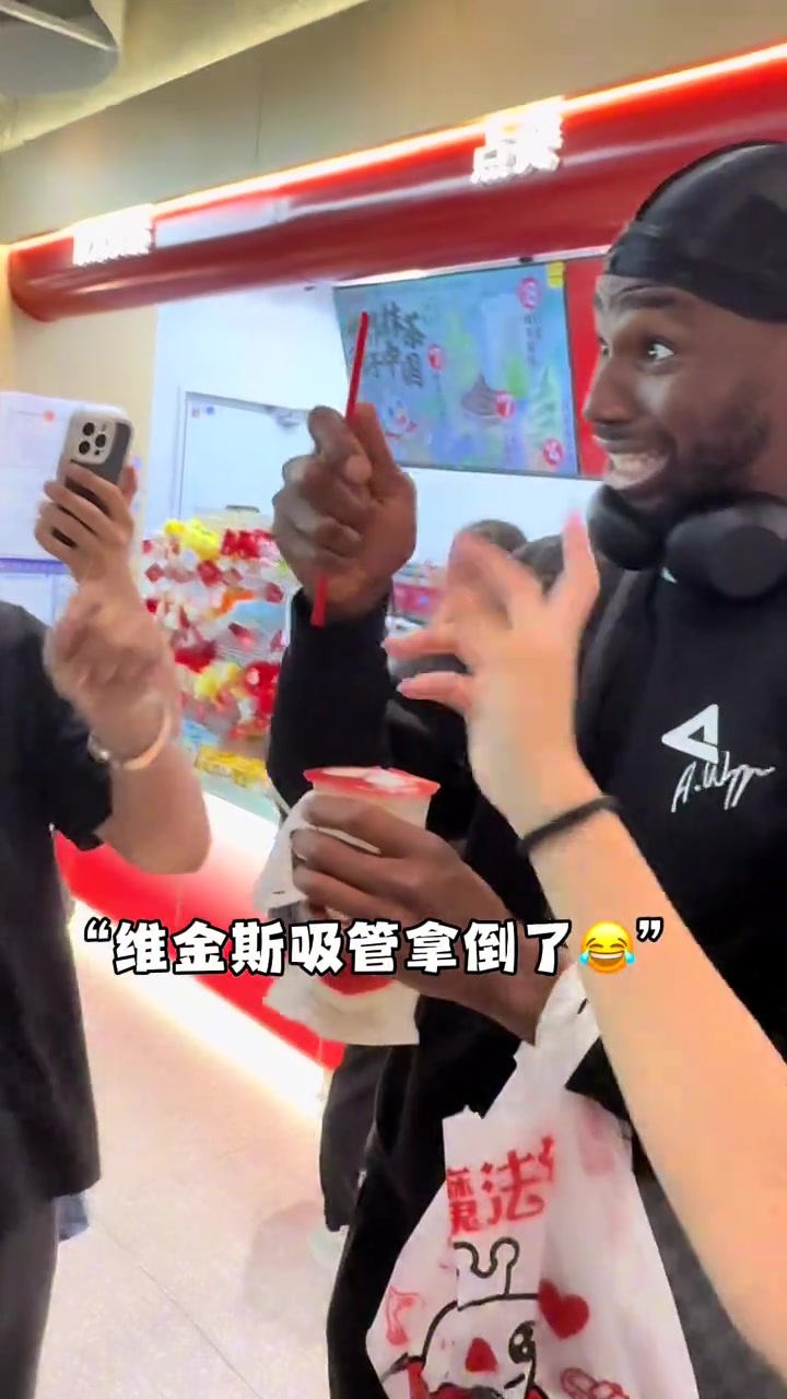24直播网维金斯在机场买蜜雪冰城喝嘬了一口直言好喝
